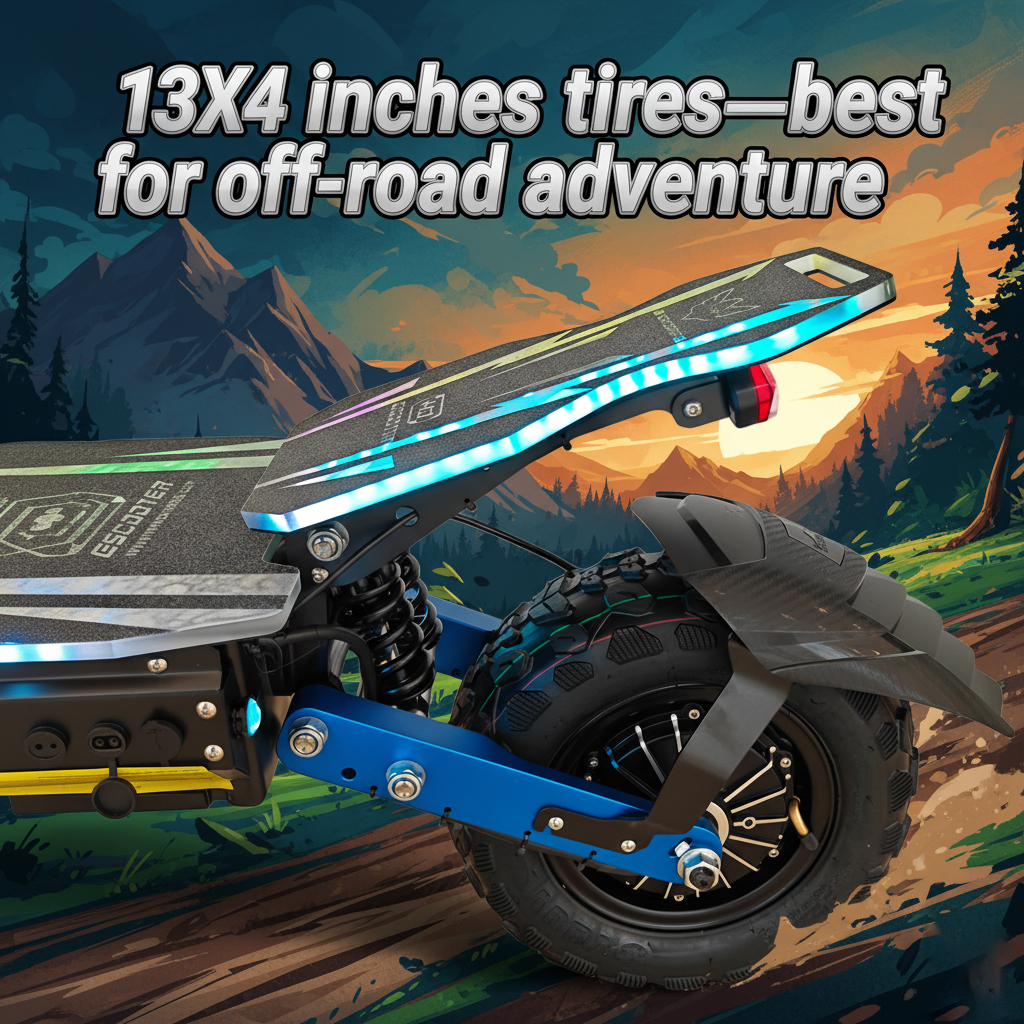 Heavy-Duty 13-Inch All-Terrain Tires – Ensures superior grip, balance, and comfort on city roads and off-road trails.